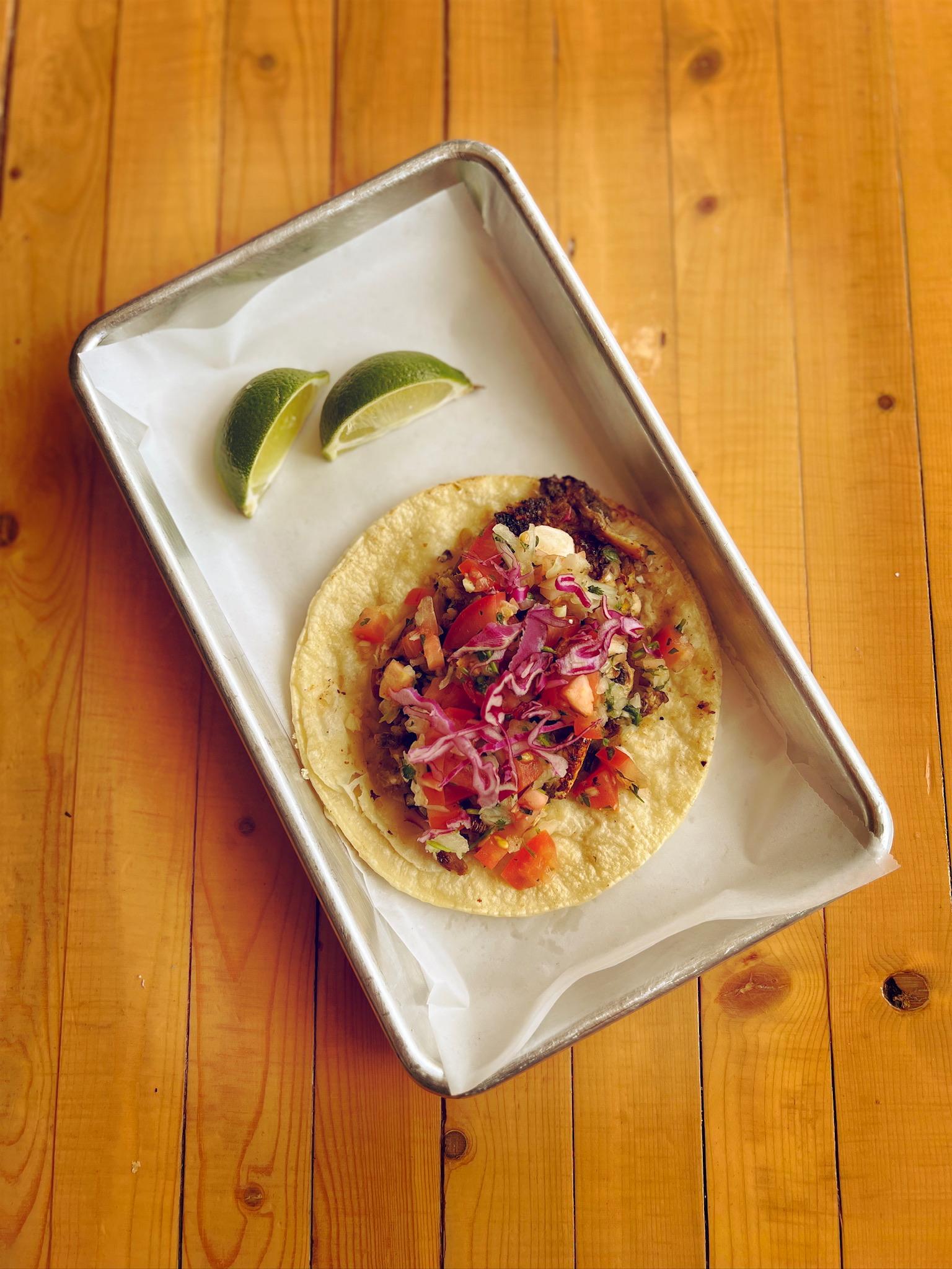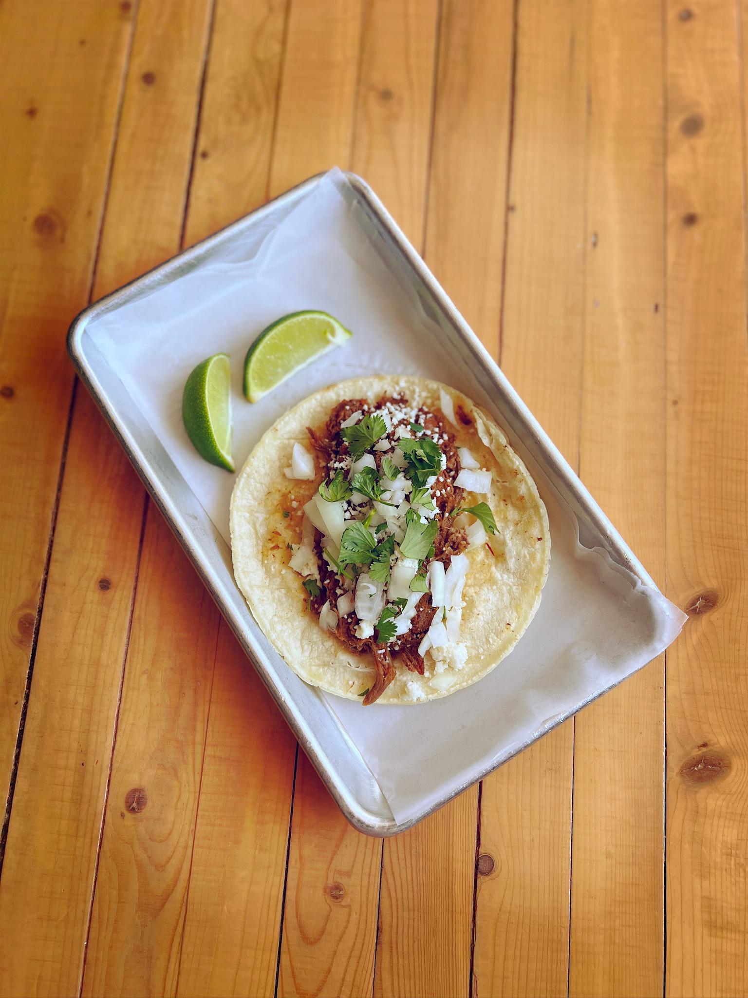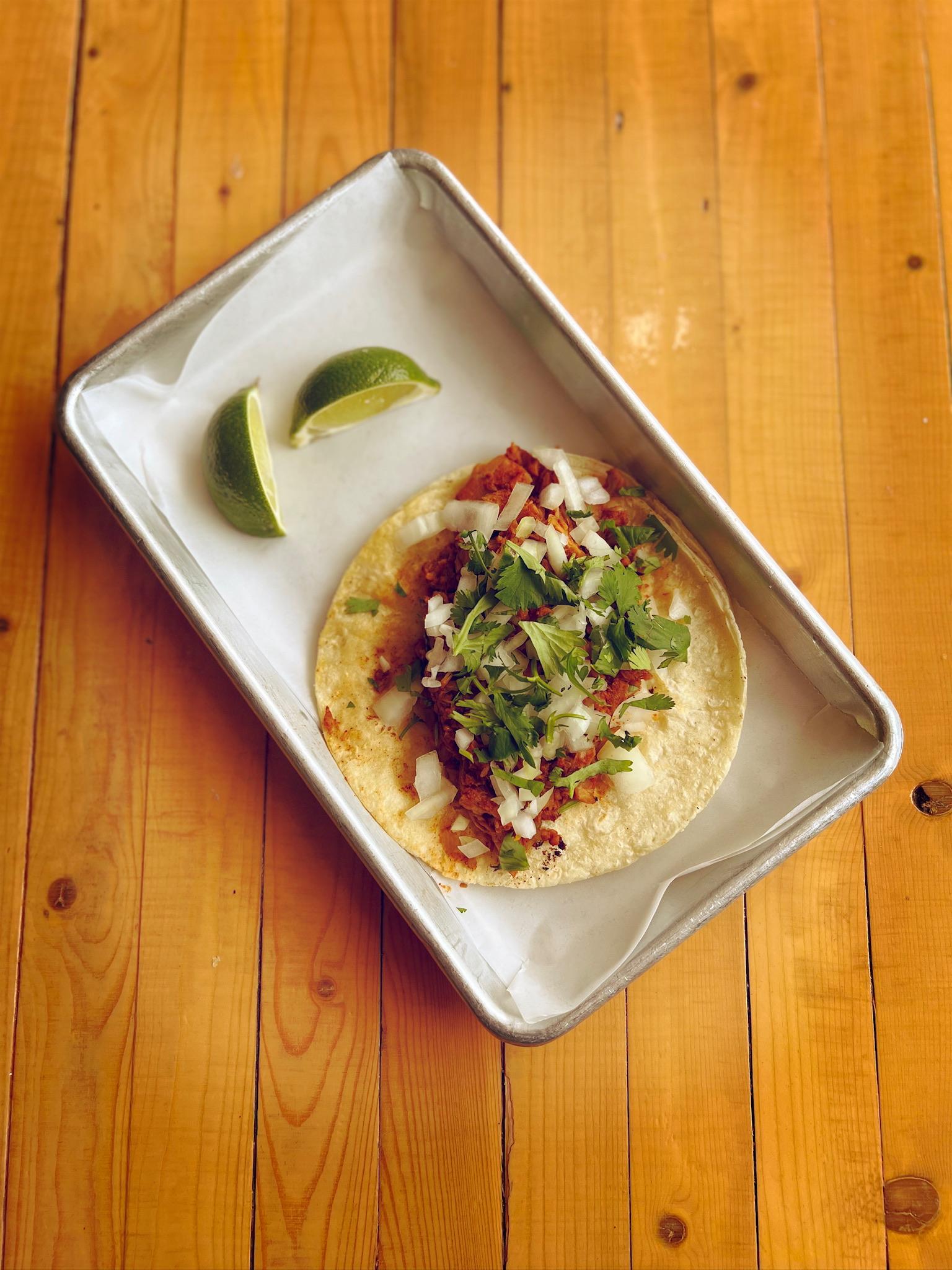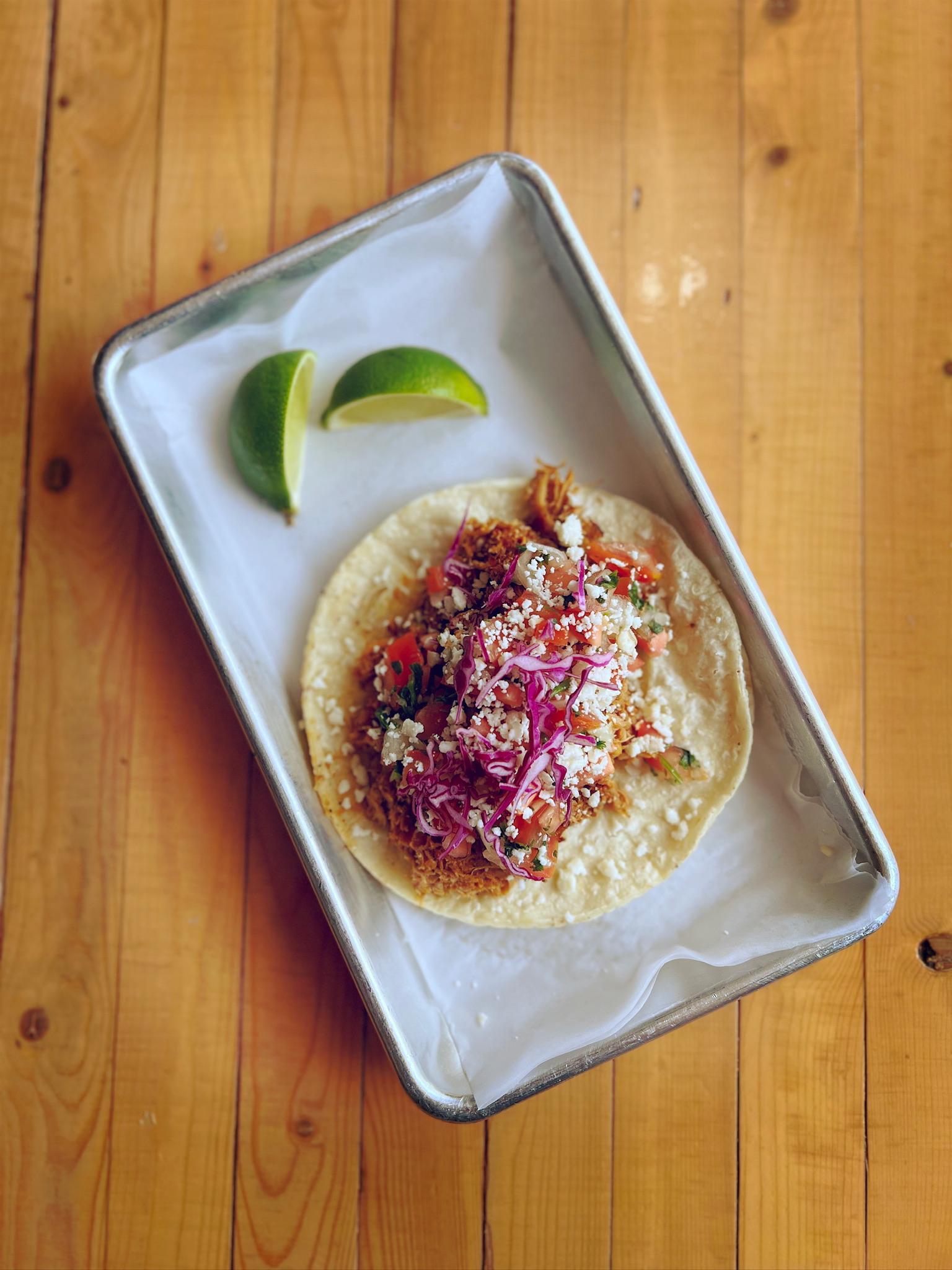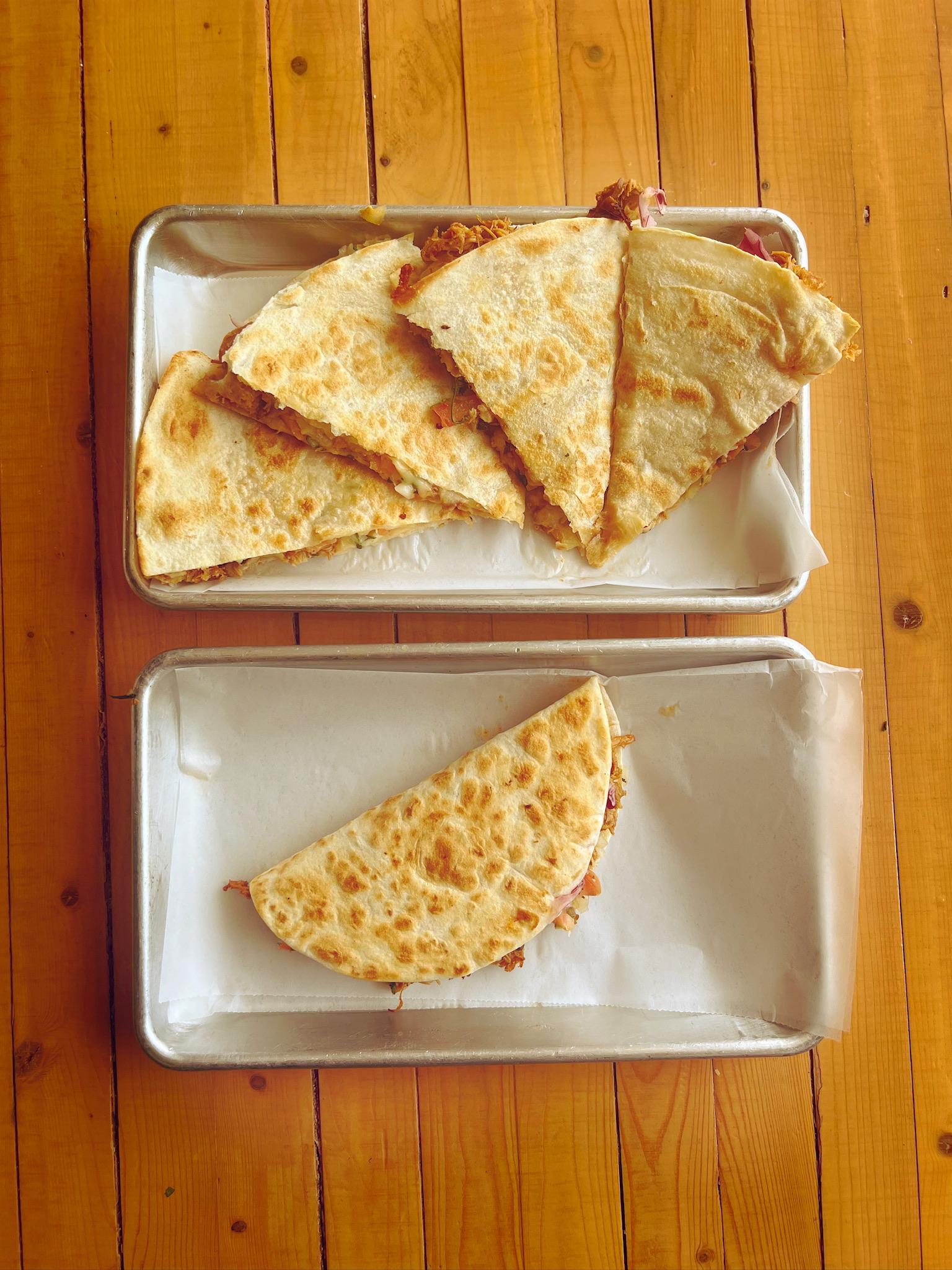 slowcooked jackfruit, melted chihuahua cheese, onion, fresh cilantro