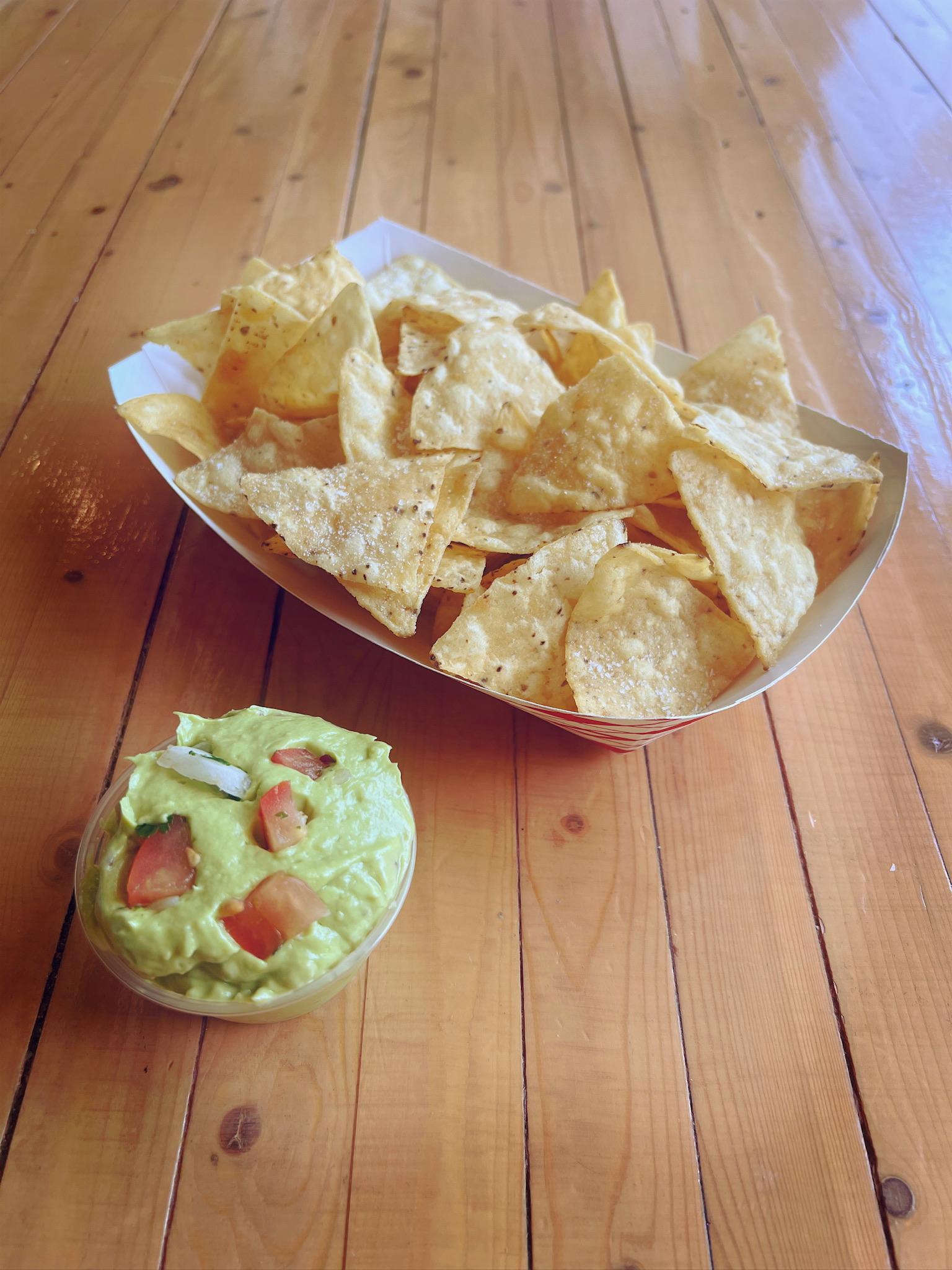 Freshly fried corn chips and four ounces of our housemade guacamole.