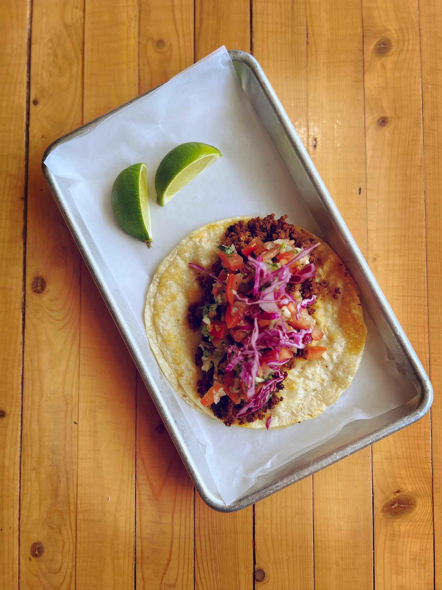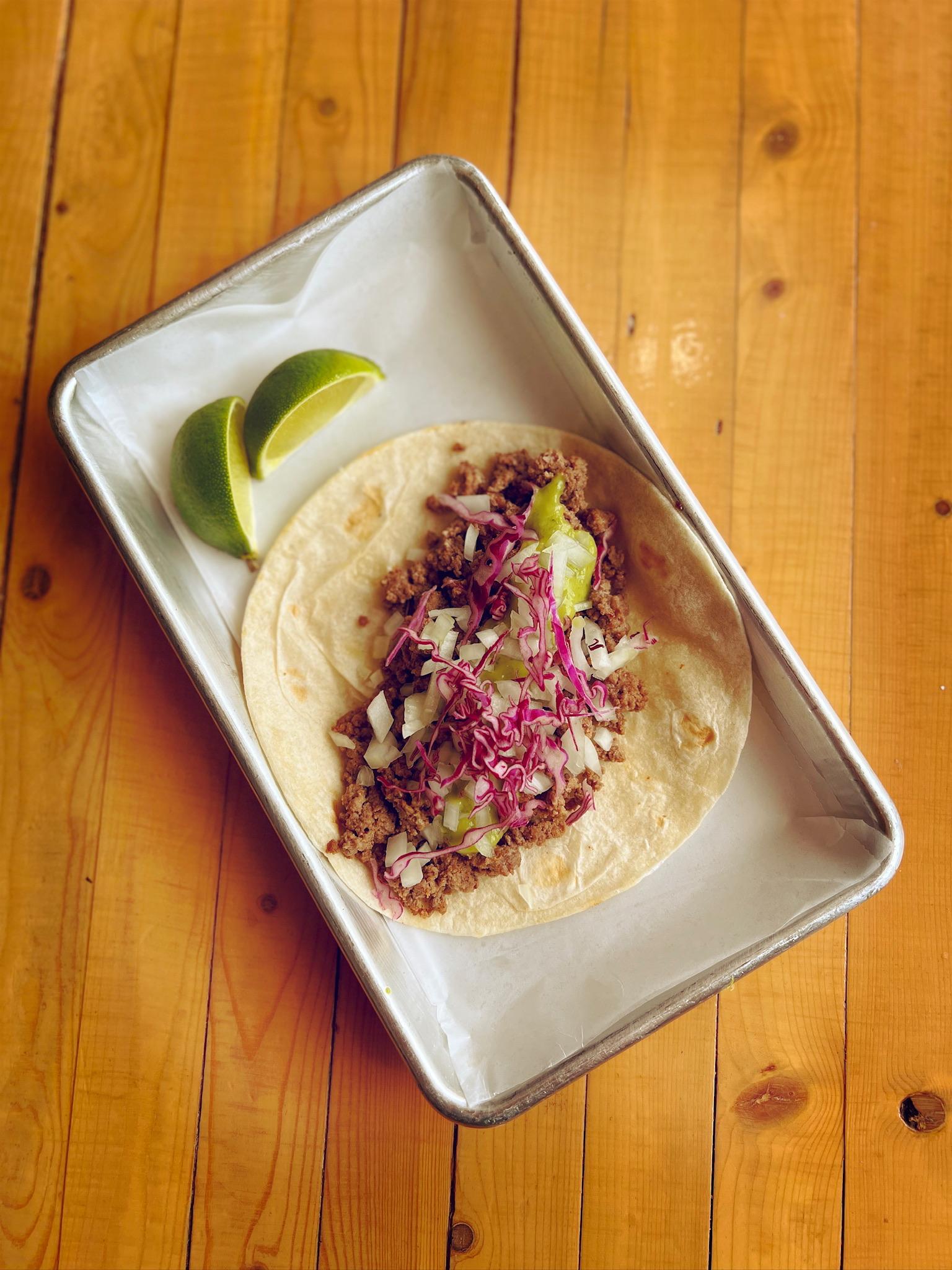 mexican style lentil chorizo, crisp red cabbage, fresh cilantro