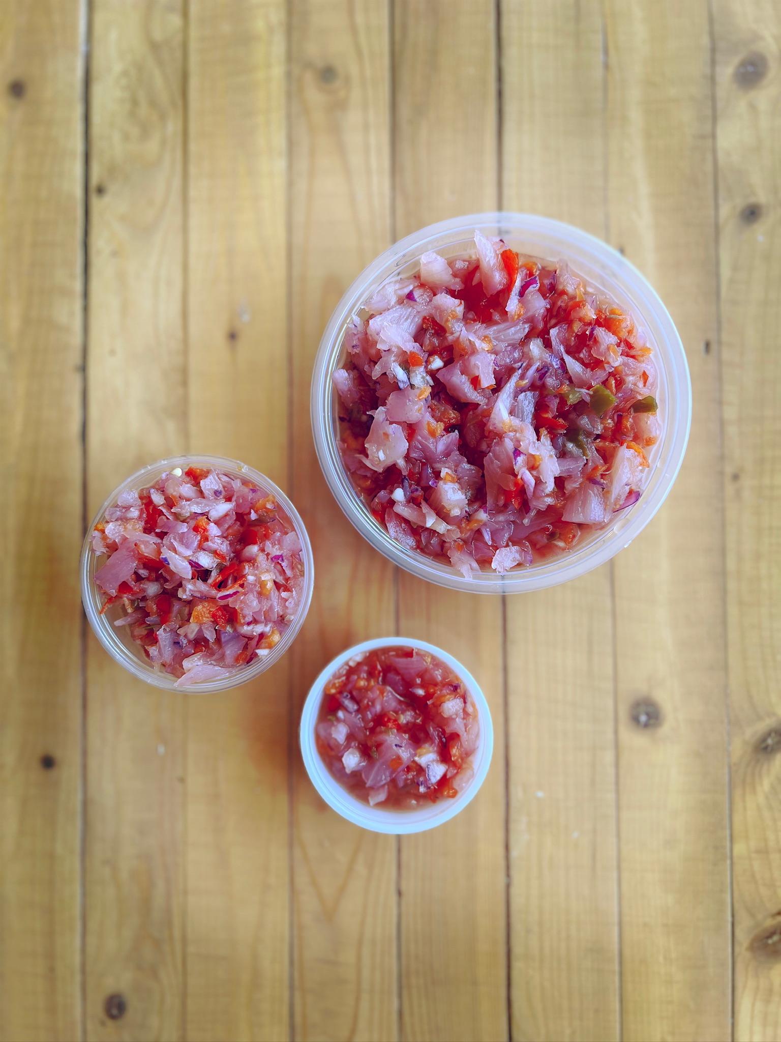Pineapple, red bell pepper, red onion, garlic, jalapeno. Made fresh daily in-house.