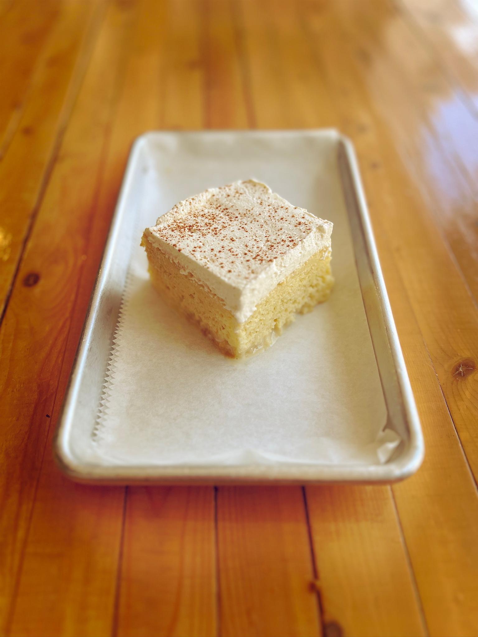 Light sponge cake soaked in sweetened cream with cookie butter frosting