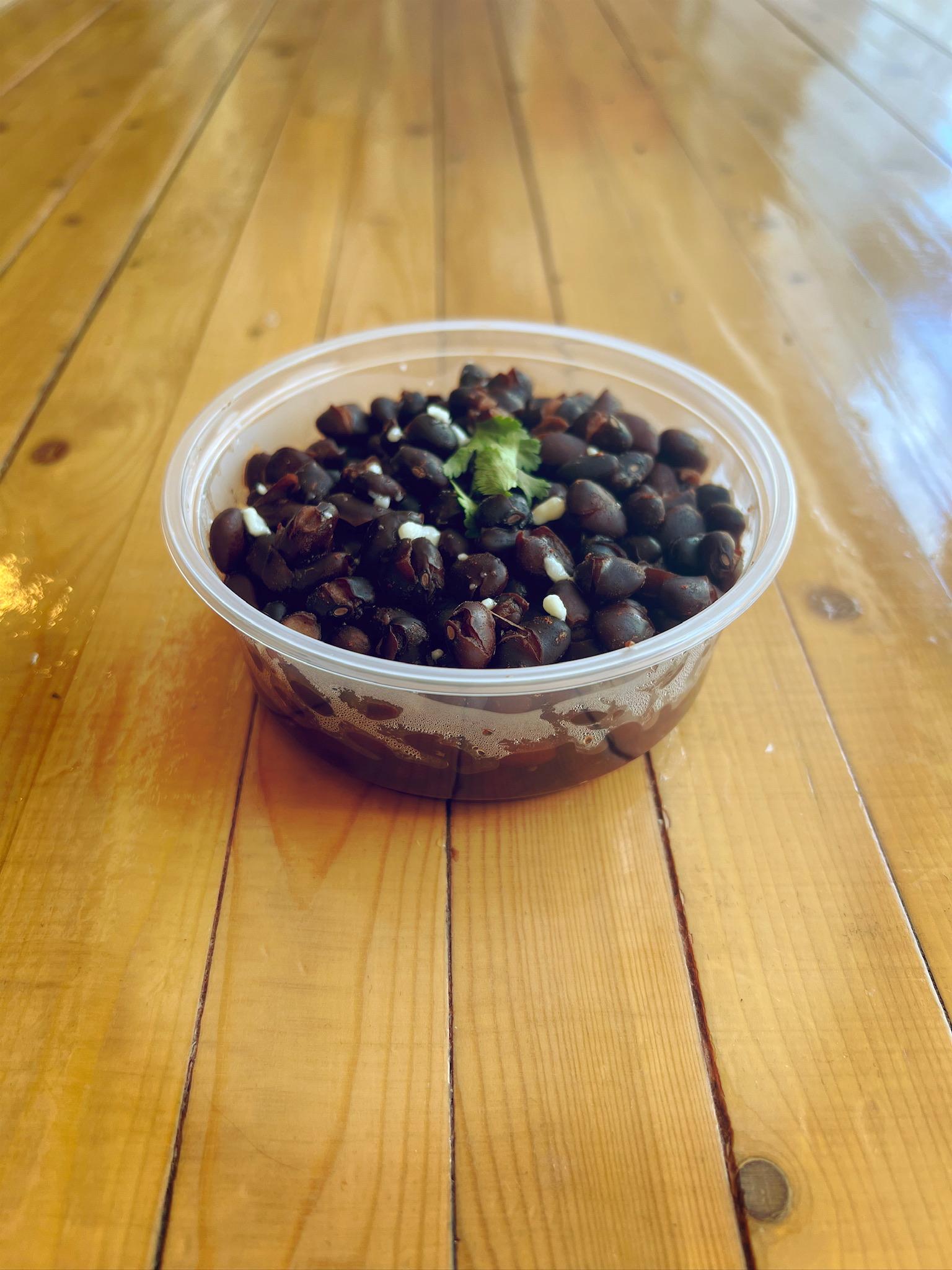 seasoned black beans, melted chihuahua cheese, fresh onion.
