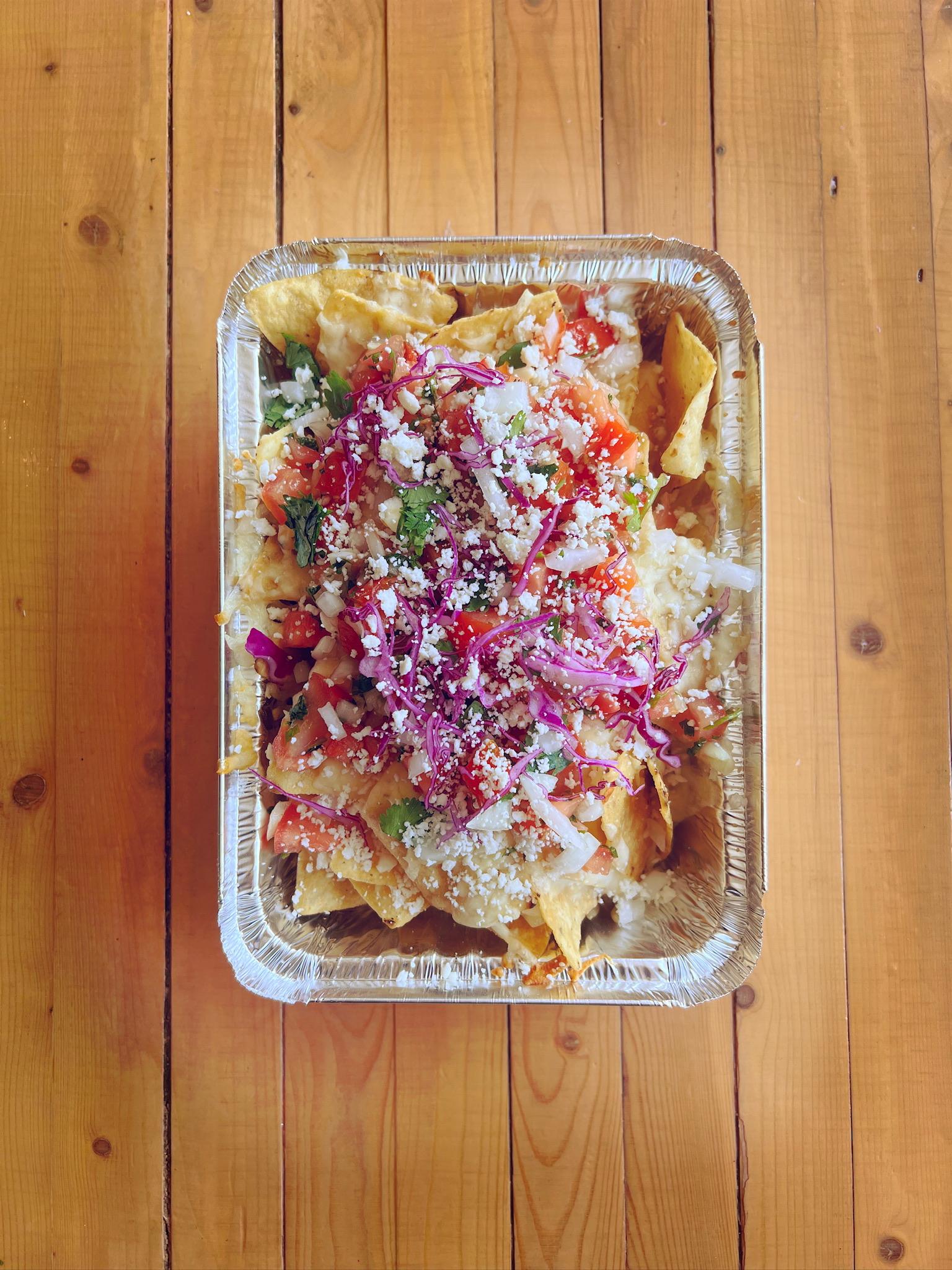 stewed chicken, melted chihuahua cheese, pico de gallo